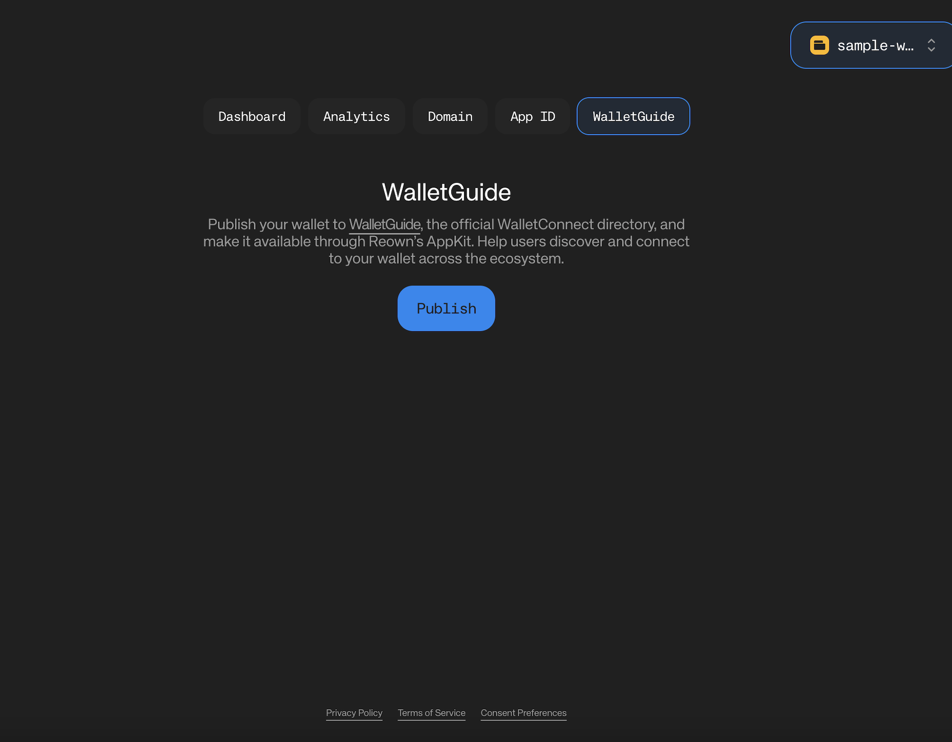 You will now see an option to publish your wallet to WalletGuide. Click “Publish” to proceed.