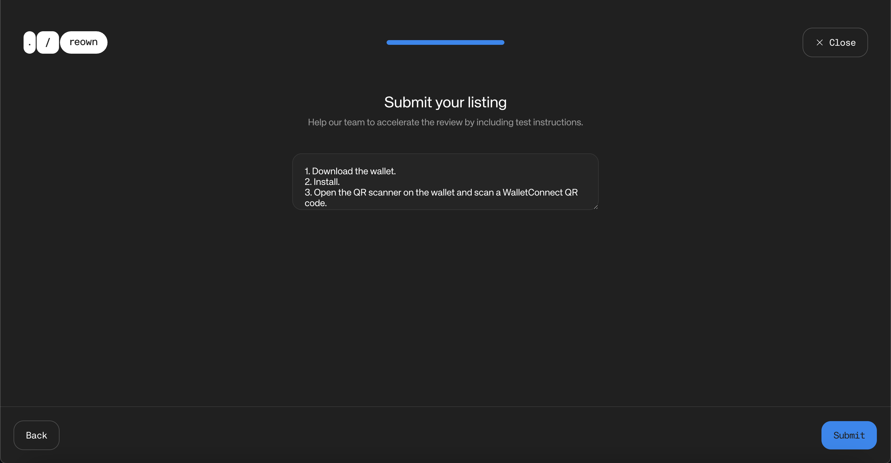 | Testing Instructions | Instructions on how to test your Reown Integration | yes |